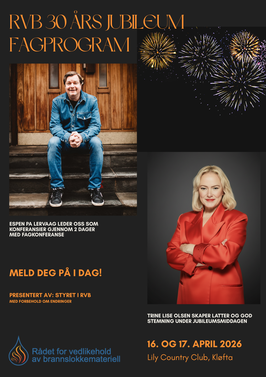 Vi har gleden av å ønske deg velkommen til RVB-konferansen 2026, som markerer RVB 30 år. Konferansen byr på to innholdsrike dager med faglig påfyll, bransjeinnsikt og praktisk læring – med fokus på kvalitet, kompetanse og fremtidens brannvern.
